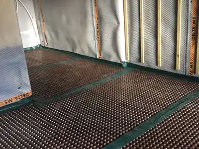 Internal waterproofing, otherwise known as tanking, involves installing a waterproof membrane to the internal walls and floor of your basement. This waterproof membrane is covered in studs and cavities which effectively gather and channel moisture, allowing it to drain harmlessly away through the pump drainage system.