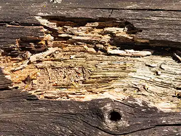 Wet and dry rot cause the timber to break down and become soft and spongy which, over time, weakens the wood so much that eventually it will crumble and collapse. Damp timber is also the perfect breeding ground for woodworm, insects that can bore holes in your timbers, weakening them.